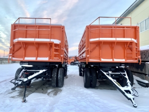 Внутренние размеры самосвальной установки без силосовозных бортов 6000х2380х1400мм, объем кузова без надставных бортов 20 м3. Прицеп зерновоз возможно дооборудовать съемными надставными бортами высотой 400 мм. Объем кузова с надставными бортами 25.7 м3.